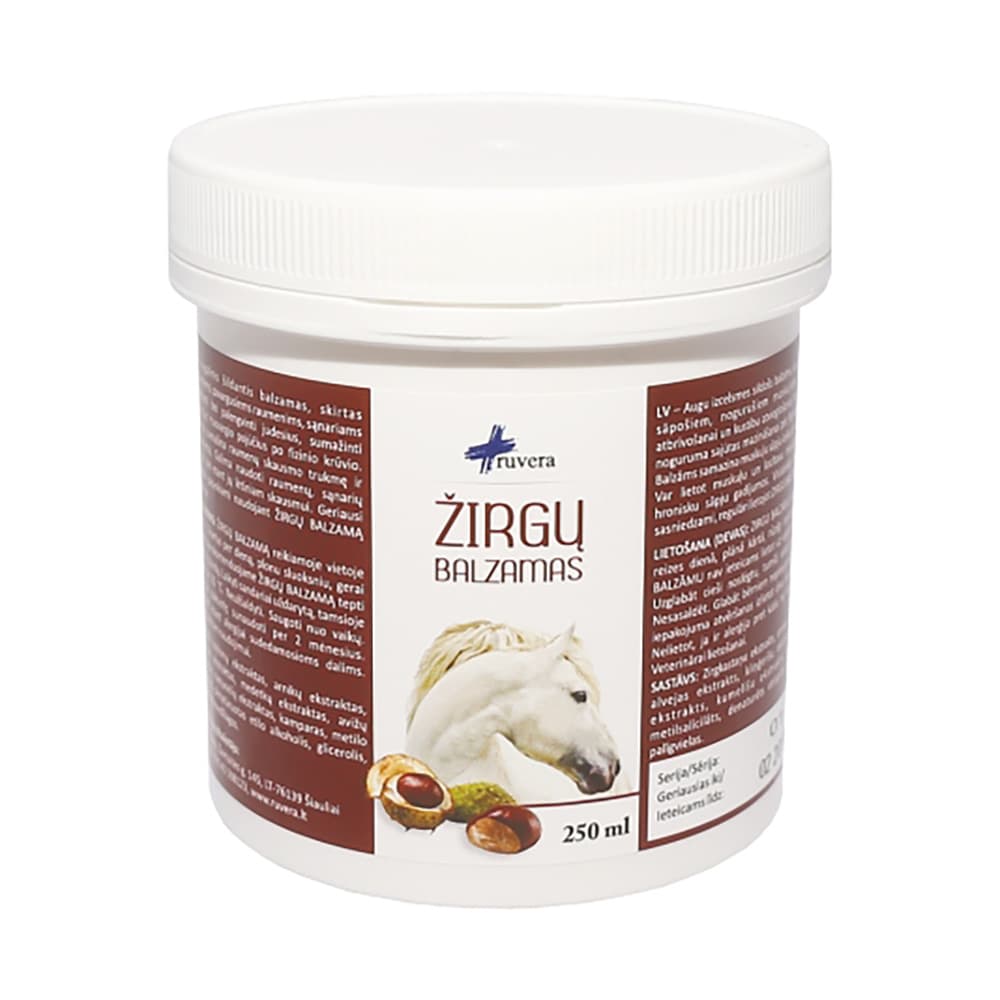 Ārīgai lietošanai zirgiem. Kopšanas līdzeklis. SASTĀVS: zirgkastaņu, arnikas, alvejas, kliņģerīšu, auzu, kumelīšu ekstrakti, kampars, metilsalicilāts, denaturēts etilspirts, glicerīns, palīgvielas. Augu izcelsmes sildošs balzāms, kas paredzēts sāpošiem, nogurušiem muskuļiem, locītavu atbrīvošanai un kustību atvieglošanai, nepatīkamas noguruma sajūtas mazināšanai pēc fiziskās slodzes. Balzāms samazina muskuļu sāpju laiku un intensitāti. Var lietot muskuļu un locītavu masāžai, kā arī hronisku sāpju gadījumos.