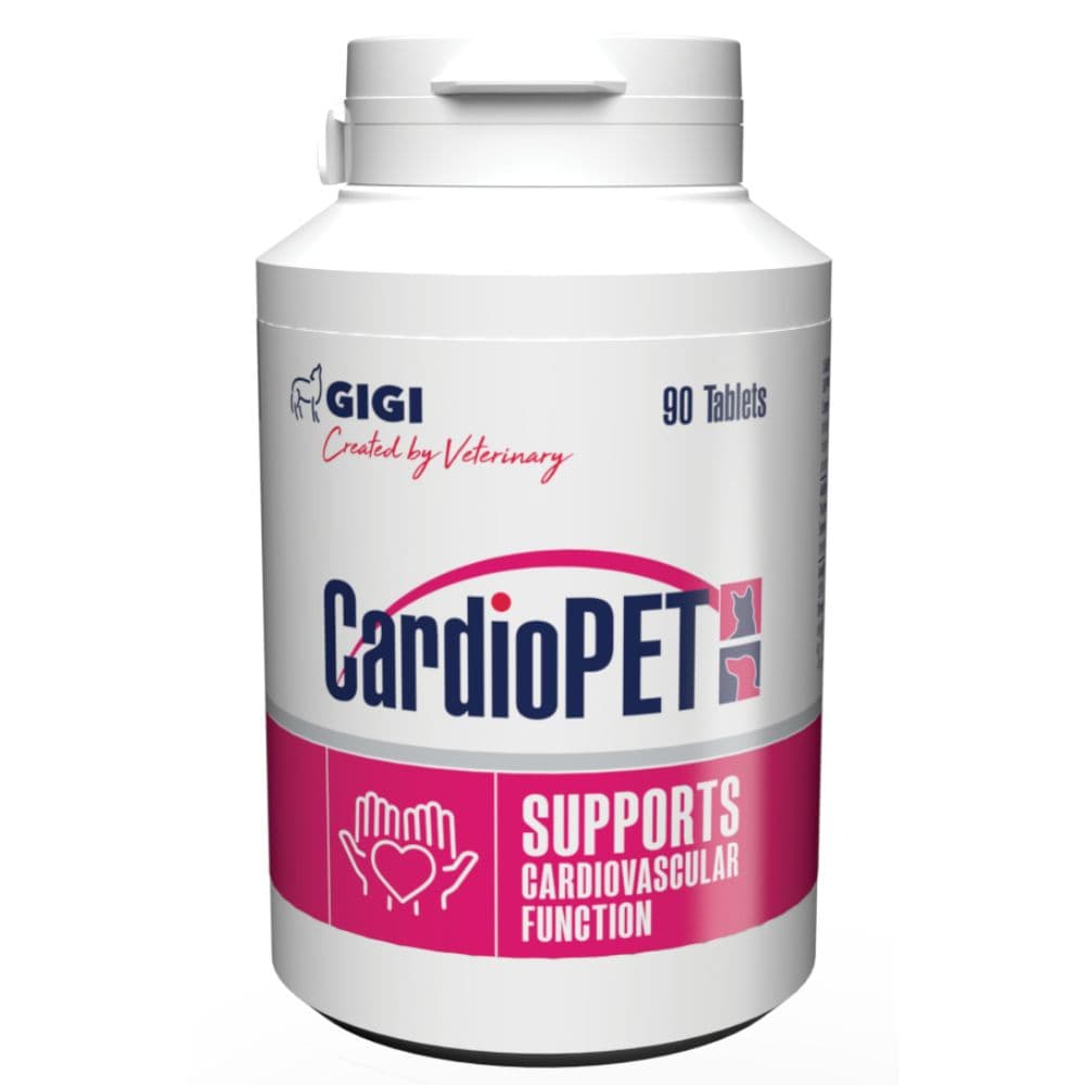 Papildbarība suņiem un kaķiem CardioPET sastāvā iekļautās aktīvās vielas stabilizē un nostiprina sirds-asinsvadu sistēmas funkcionālo darbību suņiem un kaķiem. Sastāvs: Viena tablete 1,6 g satur: Vilkābeles ogu ekstrakts (Extractum fructus Crategi) 70 mg, koenzīms Q10 20 mg. Uzturfizioloģiskas piedevas: L-Taurīns (3a370) 200 mg. Organoleptiskas piedevas: Eleiterokoka (Sibīrijas žeņšeņa) saknes ekstrakts (Extractum radicis Eleuterococci) 70 mg. L-Taurīns ir ūdenī šķīstoša aminoskābe, kuras galvenā funkcija ir antioksidatīvā darbība, kas pasargā miokarda šūnas, tonizē sirds funkcionālo darbību. Šķidrais eleiterokoka ekstrakts palīdz stiprināt organisma pretestību pret nelabvēlīgiem ārējās vides faktoriem, veicina fizisko un garīgo spēju uzlabošanos, tonizē organismu, organisma adaptācijas spējas ekstremālās situācijās. Vilkābeles ogu ekstrakts uzlabo koronāro asinsriti, tonizē sirdsdarbību, darbojas spazmolītiski. Koenzīms Q10 ir taukos šķīstoša viela, kuru producē aknas. Galvenā koenzīma Q10 fizioloģiskā funkcija ir šūnu nodrošināšana ar enerģiju no ar barību saņemtajiem taukiem, olbaltumvielām un ogļhidrātiem. Īpaša nepieciešamība pēc koenzīma Q10 ir sirdij, tās enerģētisko procesu nodrošināšanai.